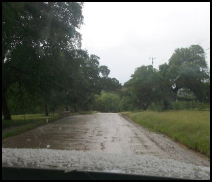 Not 3 miles from the old rescue, it was hailing so hard that the road was completely covered with ice.